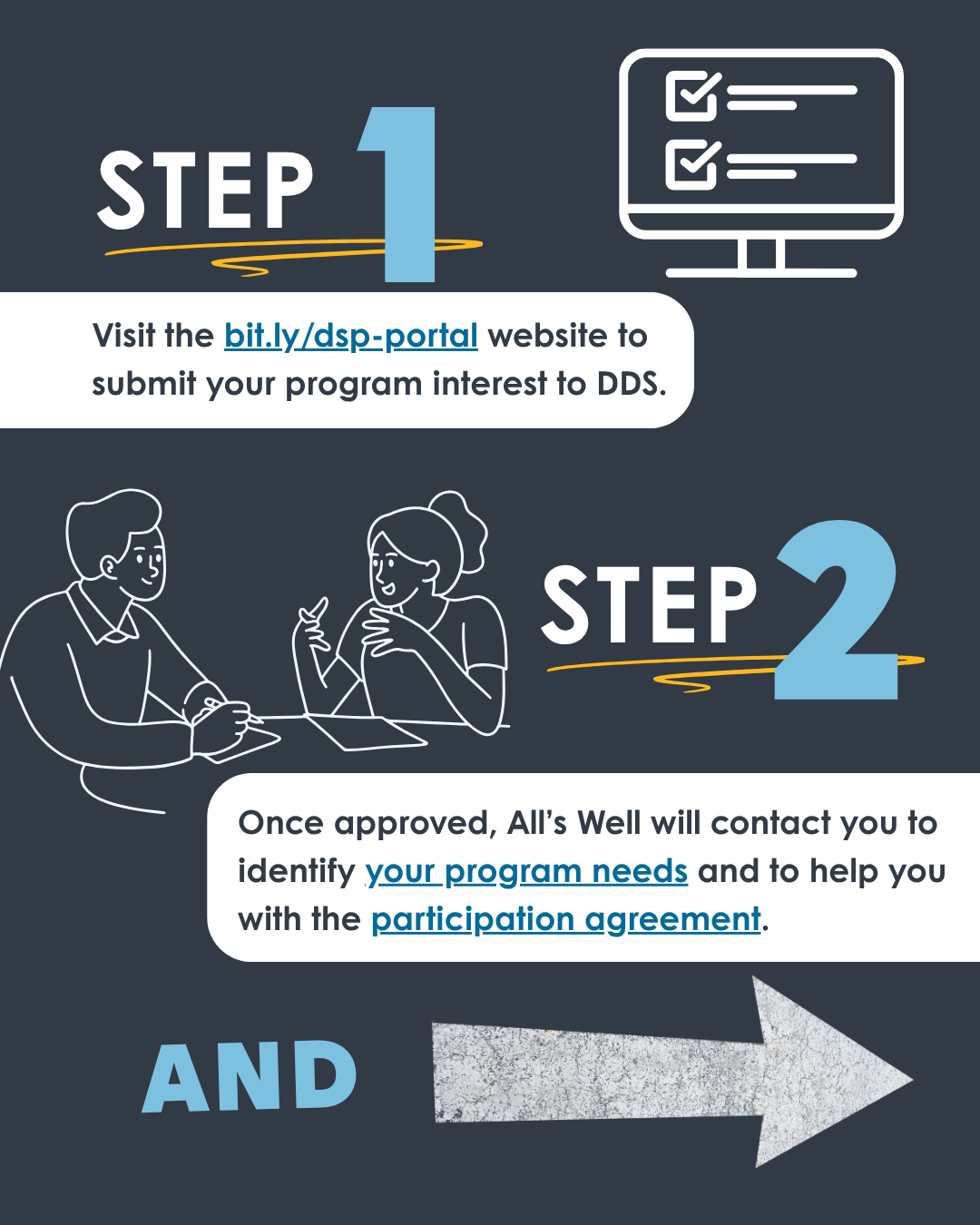 Step 2: All’s Well will contact you directly, survey your program needs and work with you to execute a Provider Participation Agreement.